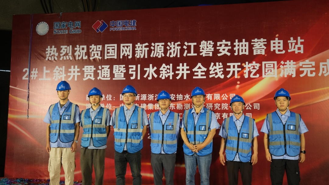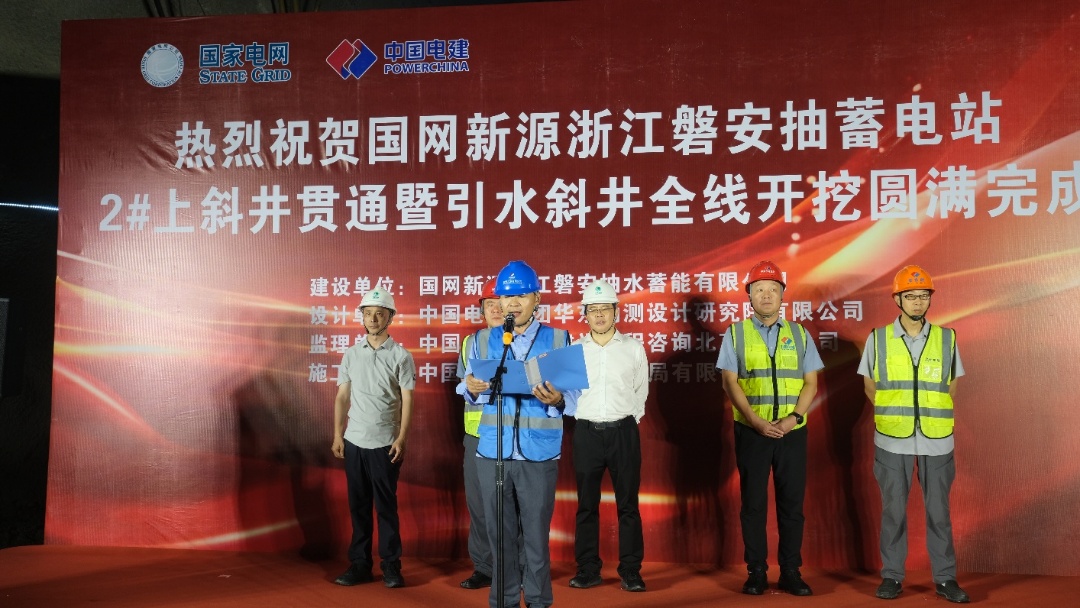9月26日上午,磐安抽水蓄能电站2#引水上斜井精准贯通,标志着磐安抽水蓄能电站斜井开挖工作取得阶段性胜利。磐安电站的4条斜井宛如4条巨龙蜿蜒于山体之中,总长度达1219米,采用“定向钻+反井钻+人工钻爆”开挖方式,施工历经1年零2个月日夜奋战,4条斜井相继顺利贯通。每一米的推进都凝聚着建设者们的智慧与汗水。斜井的顺利贯通,不仅意味着斜井开挖工序的圆满收官,更拉开了压力钢管安装工序的精彩序幕。 浙江磐安抽水蓄能电站引水斜井全线贯通 相较于此前已完工的地下厂房,斜井施工无疑是抽水蓄能电站建设中的“超级硬骨头”。这里技术复杂程度超乎想象,安全风险如影随形,其“长、陡、深”的固有特性,加上贯穿复杂岩层时面临的围岩稳定、物料运输等重重难题,就像一道道难以跨越的“天堑”,横亘在建设者面前。斜井开挖过程中创新性地运用了大口径电视开展地质摄影工作。这一先进技术犹如一双“智慧之眼”,它不仅能清晰呈现平面特征的倾向、倾角等关键数据,还能敏锐捕捉到某些介质的潜在缺陷,基于这些精准的信息,在掌握详尽地质信息的基础上,设计团队可以提前精准确定设计支护参数,这一前瞻性的举措,犹如为工程建设绘制了一幅精准的“导航图”,不仅能够优化设计方案,还能有效加快施工进度,同时,安全系数得到显著提升,为整个项目的顺利推进保驾护航。 正如国网新源华东分公司总经理、磐安公司董事长李浩良在斜井贯通仪式上感慨所言:“磐安电站斜井施工是整个地下引水输水系统的‘咽喉’要道。斜井顺利贯通,是我们全体参建单位凝心聚力、攻坚克难、追求卓越的生动写照。这份成绩来之不易,未来我们更需努力,要以此为新的起点,戒骄戒躁,再接再厉。”